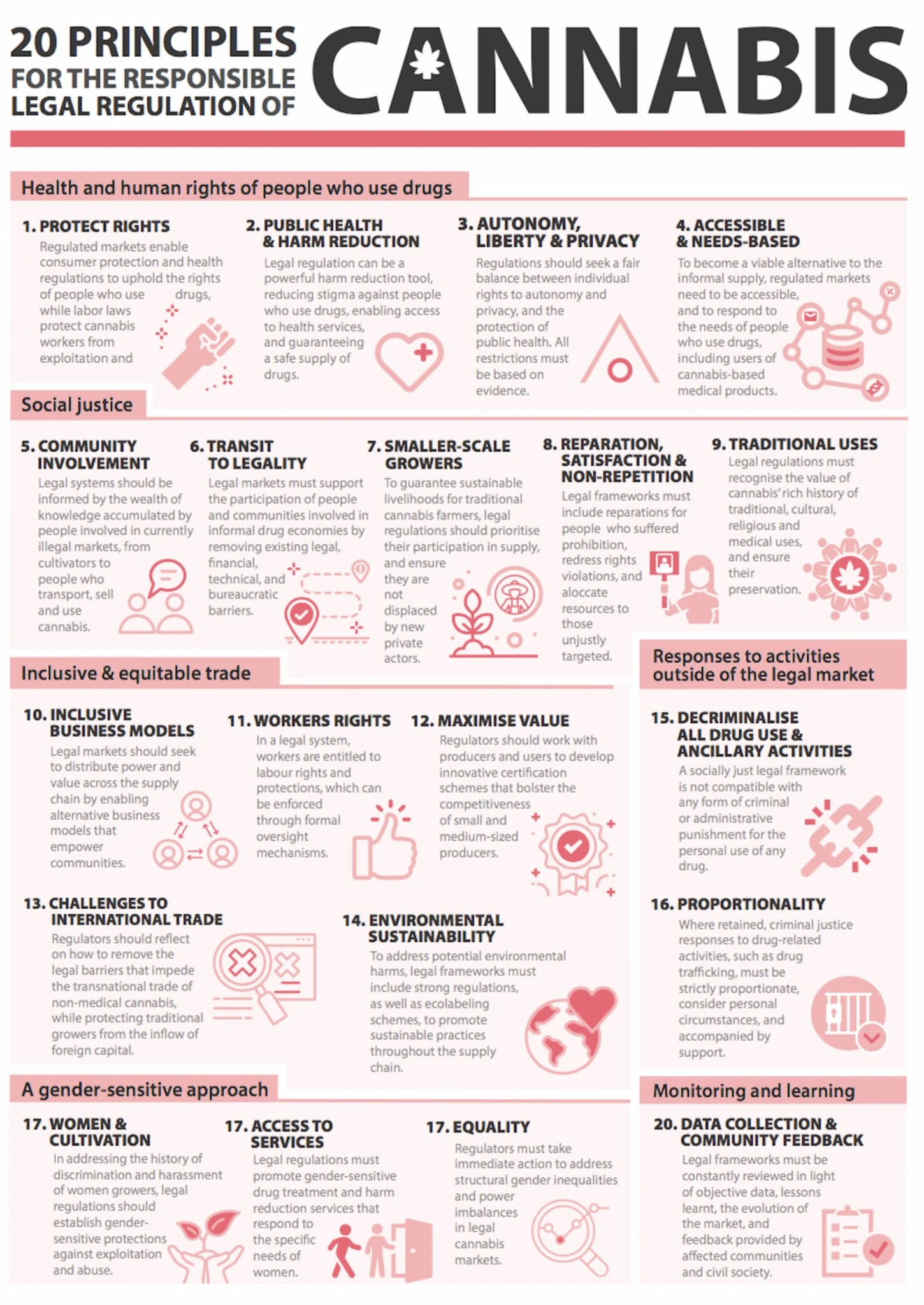 The IDPC published a report containing 20 key principles on how to create more equitable cannabis industries that promote harm reduction and the health of drug users, give business opportunities to communities worst affected by the war on drugs, are inclusive of women, protect the environment and resist corporate capture.