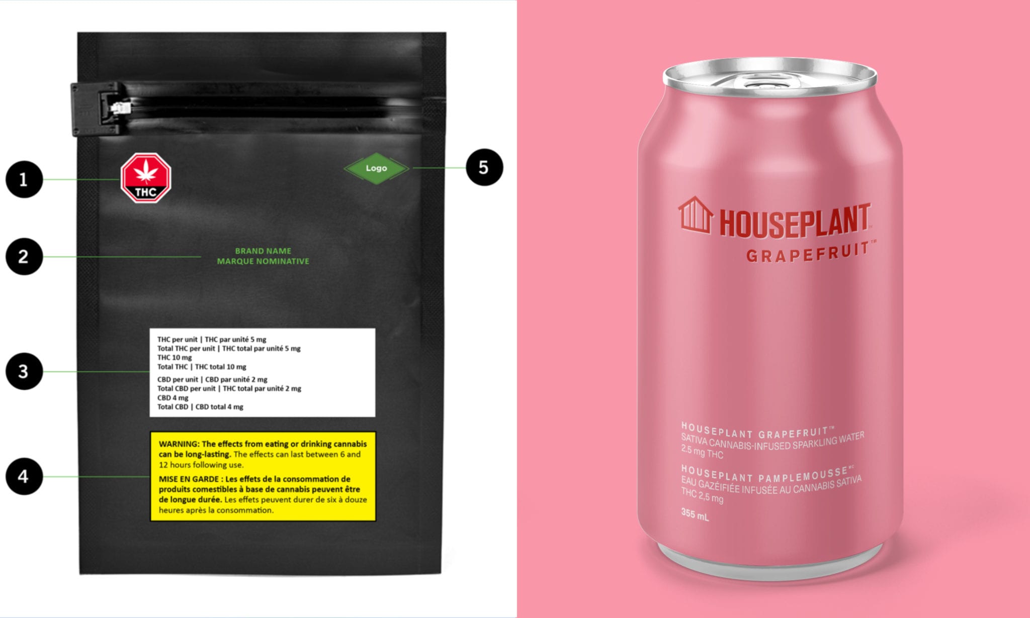 Limits for possessing cannabis-infused drinks and plain packaging rules have repeatedly been criticized by the industry and even provincial distributors. Photos via Health Canada and Canopy Growth Corp.