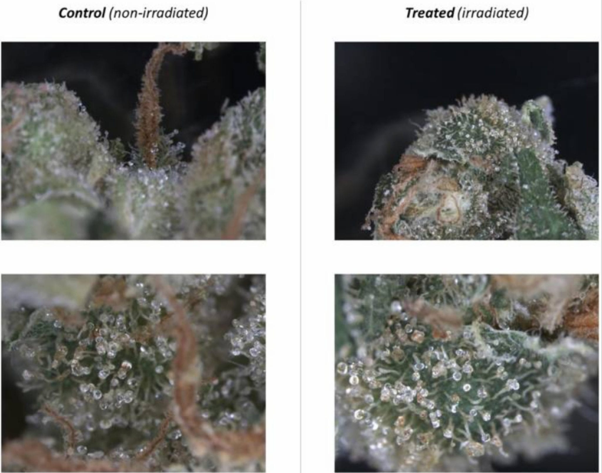 A 2016 study funded by Netherlands producer Bedrocan looked at the overall effects of gamma irradiation on four separate cultivars. The results showed no change in THC, CBD or moisture levels, but a 10–38 per cent reduction in terpene content.