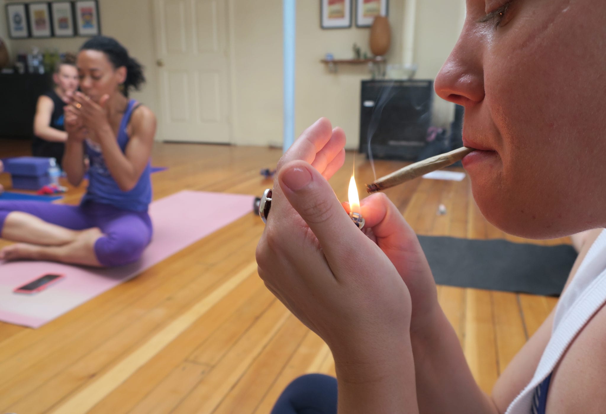 Medical cannabis yoga practice in Oakland, California. Photo via Rusty Blazenhoff/Flickr