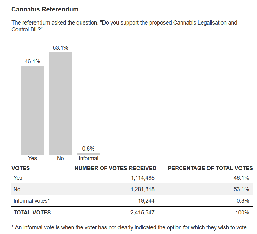 Over 1.11 million voters are in support of a proposed bill for the New Zealand government to regulate an adult-use market, with 1.28 million against.