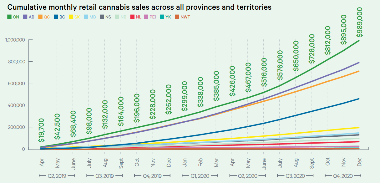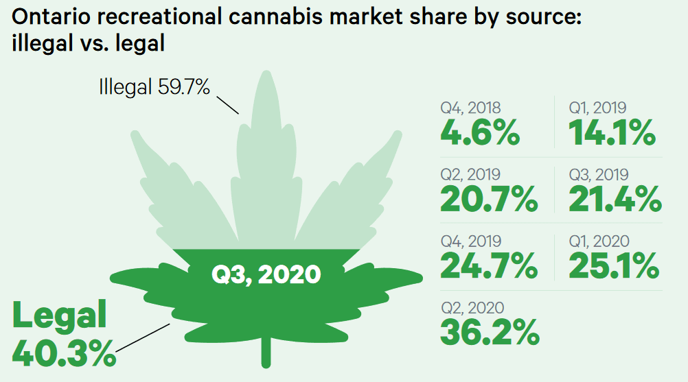 Canada’s largest pot market continued to eat away at illicit sales at the end of 2020, according to the latest quarterly report from the Ontario Cannabis Store.