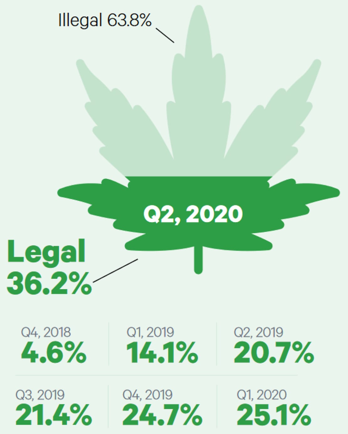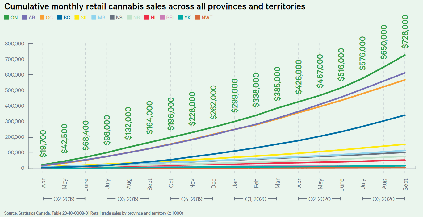 On Thursday, the Ontario Cannabis Store said that between July and the end of September legal sales made up 36.2 per cent of the recreational market, up from 24.9 per cent in the previous quarter.